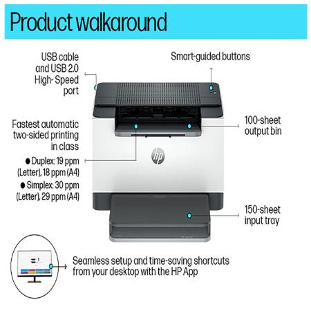 The HP LaserJet M209d is a compact, single-function monochrome laser printer built for individuals and small workgroups that require fast, reliable black-and-white printing. With print speeds up to 30 pages per minute, automatic two-sided printing, and a sleek, minimal design, it is optimized for efficient, everyday document handling. The M209d is ideal for work-from-home professionals, students, or anyone looking for a budget-friendly laser printer without unnecessary extras like scanning or copying.